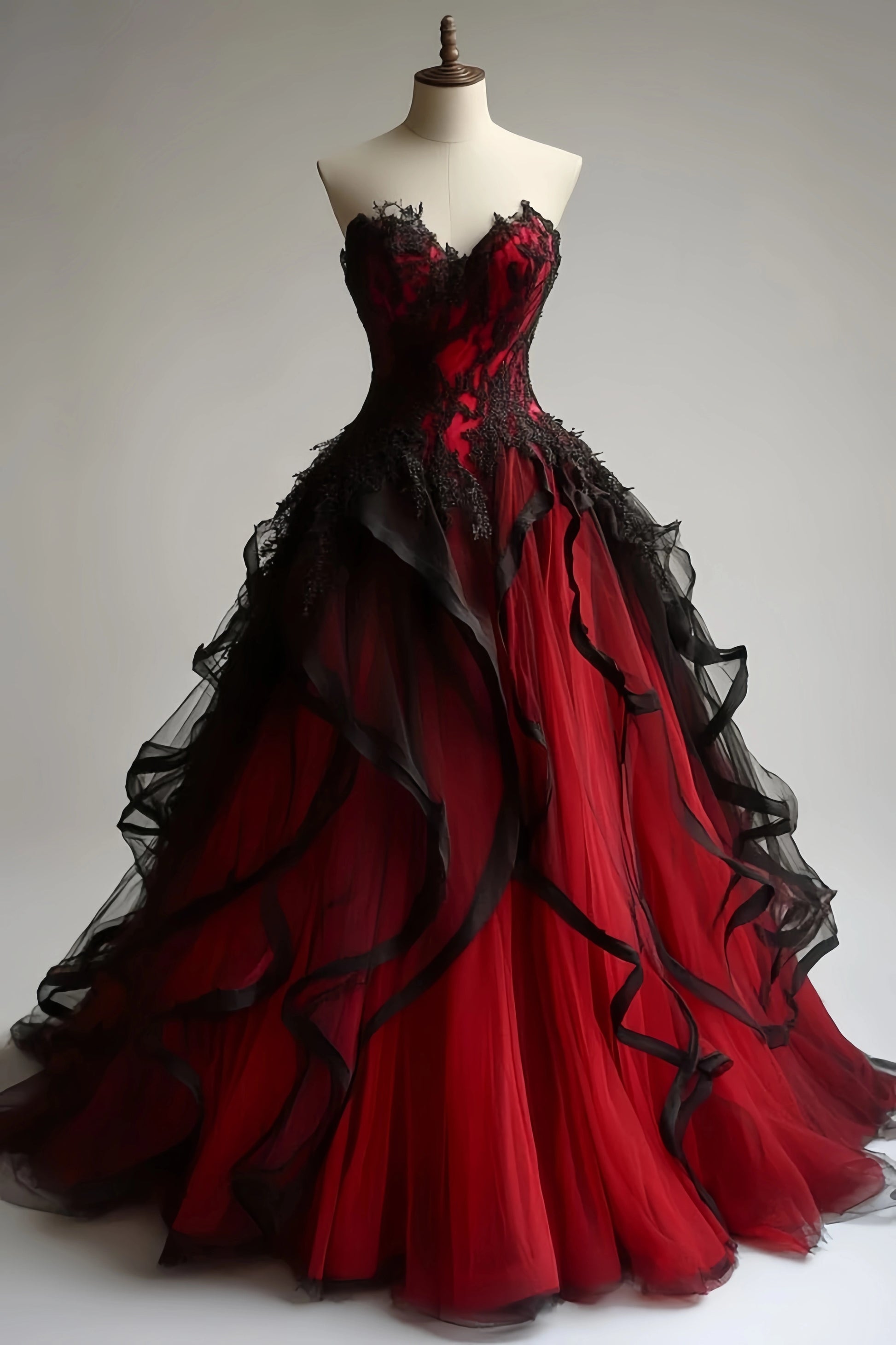 Style: A-lineFabric: Tulle, LaceNeckline: SweetheartSleeves: Sleeveless