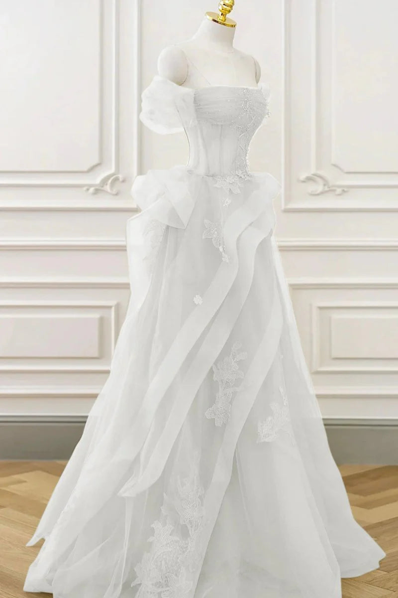 Grass Green A-Line Prom Dresses Tulle Appliques Evening Dress,AST2203