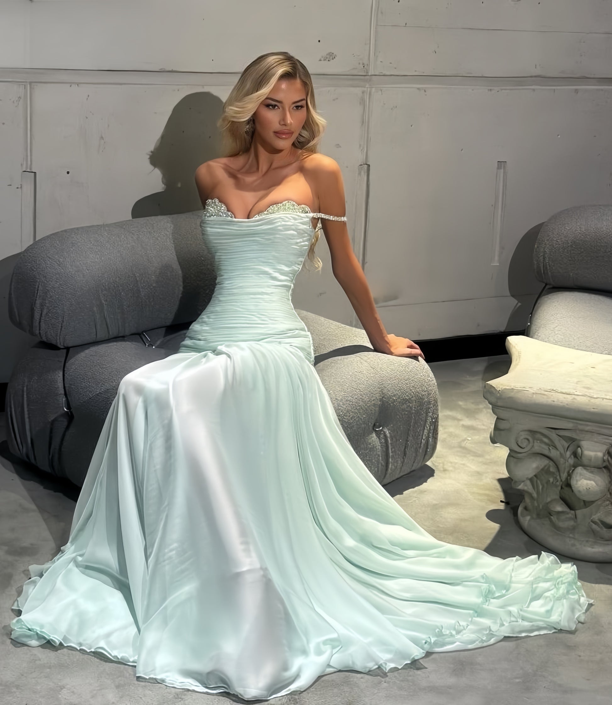 High Quality Custom Made Chiffon Prom Dresses Light Blue Beaded Evening Formal Gown,AST2094
