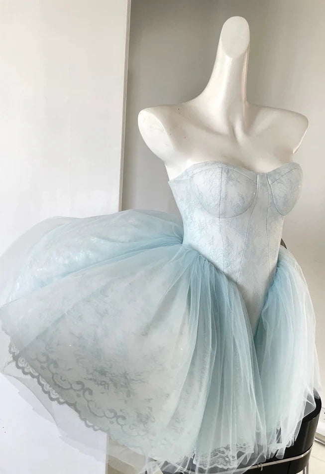 Light Blue Sweetheart Homecoming Dresses Lace Birthday Party Ball Gown,AST1961