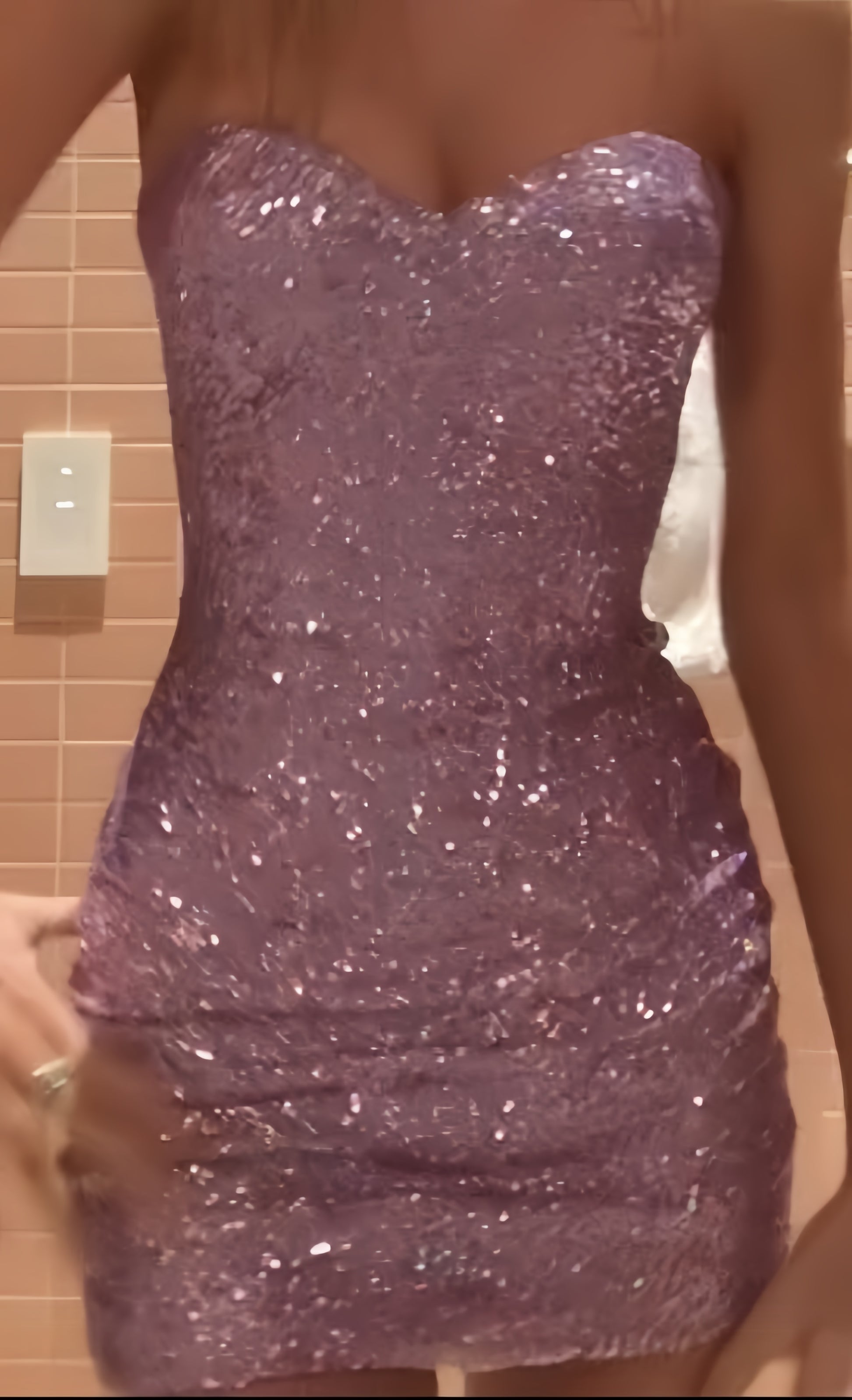 Style: BodyconFabric: SequinColor: LilacNeckline: SweetheartSleeves: Sleeveless
