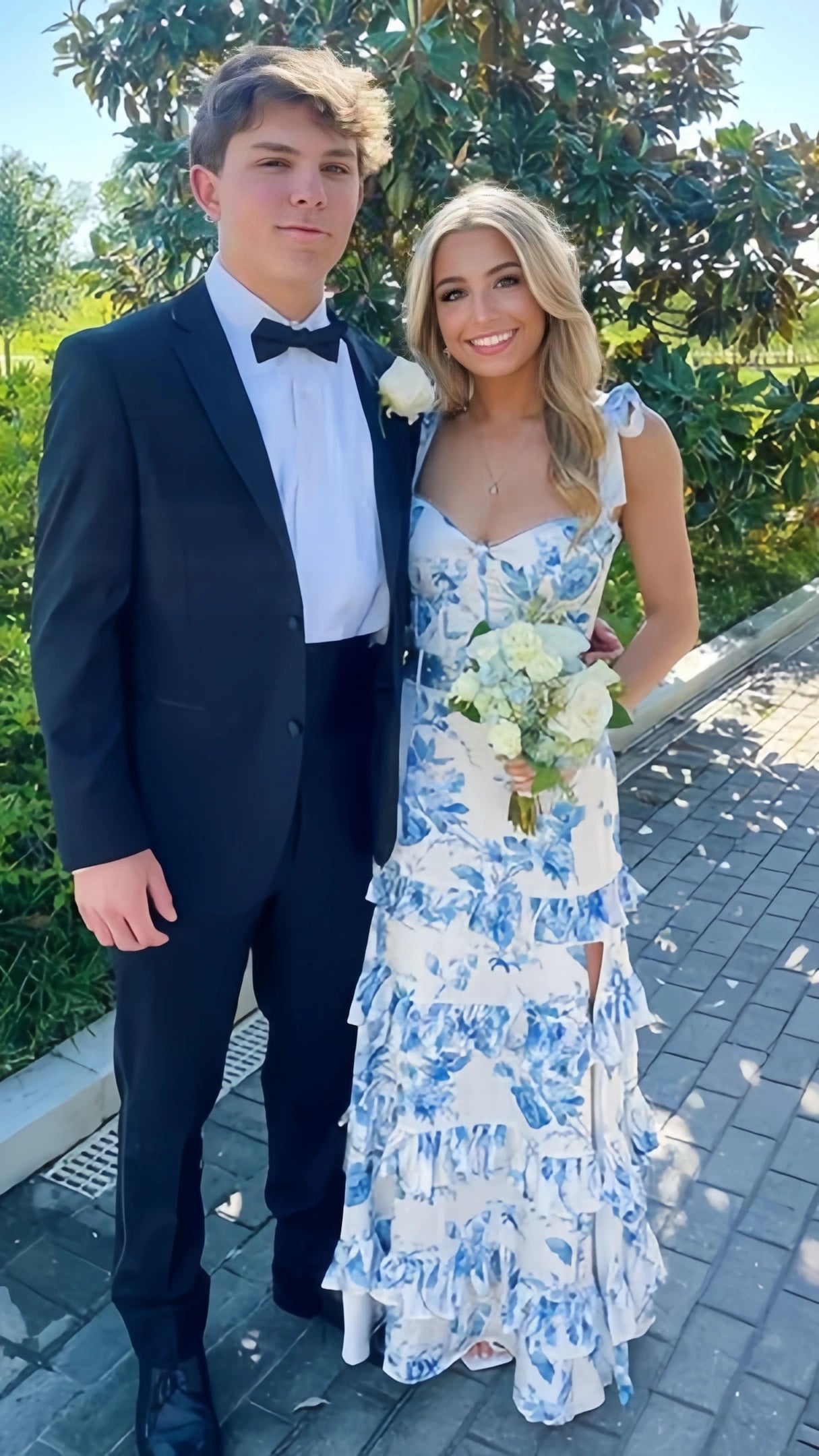 New Arrival Floral Prom Dresses Chiffon Ruffle Evening Party Dress,AST2207