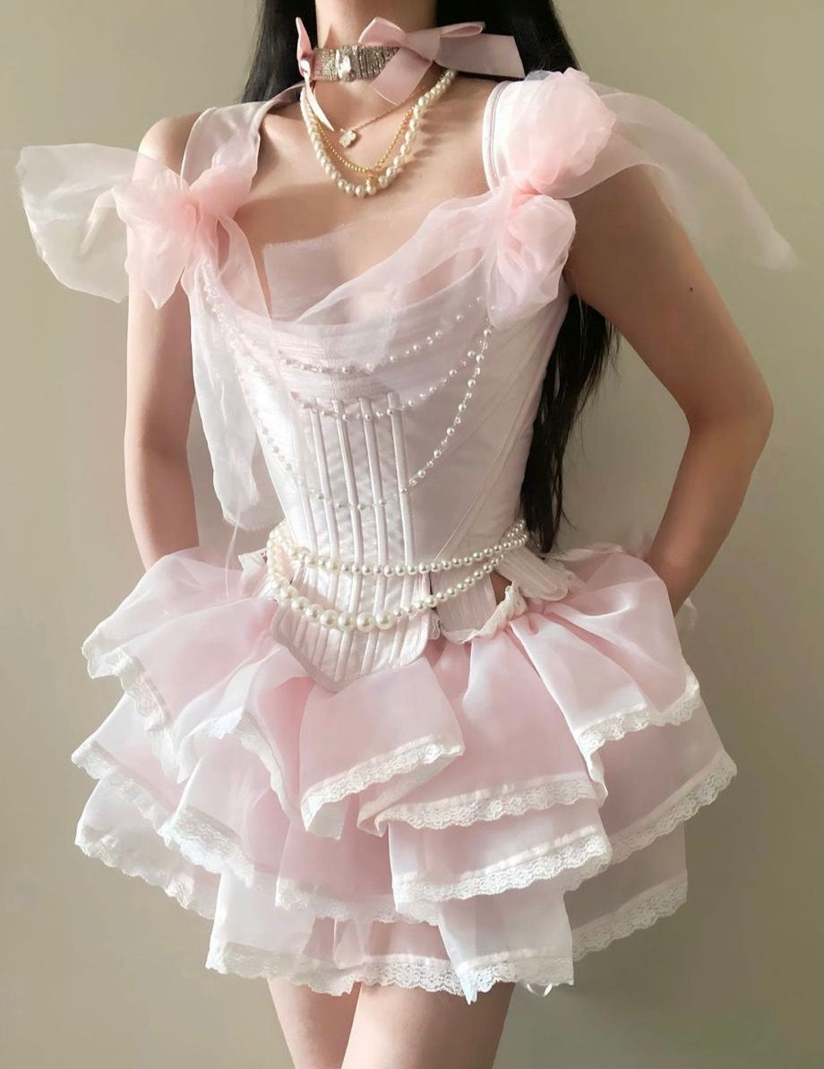 Style: A-LineFabric: Organza, LaceColor: PinkNeckline: As photoSleeves: Sleeveless