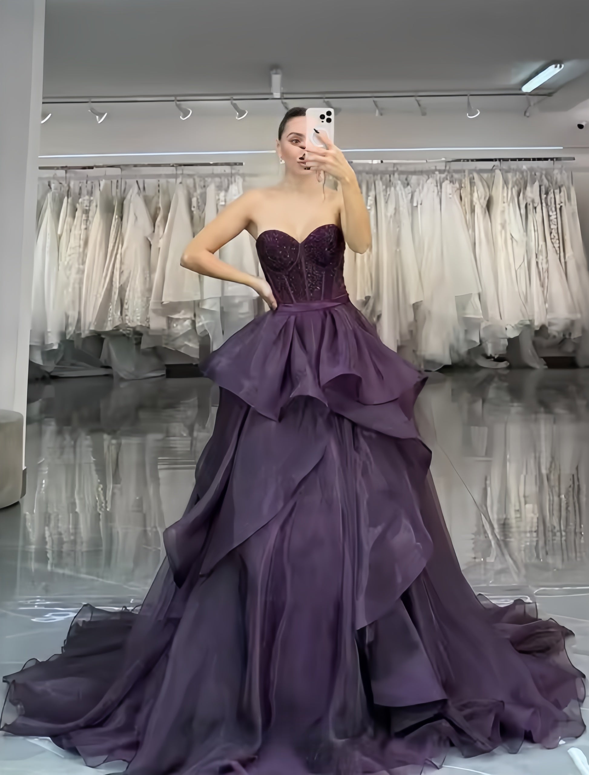 Purple Sweetheart Organza Prom Dresses Beaded Sweet 16 Dress,AST2108